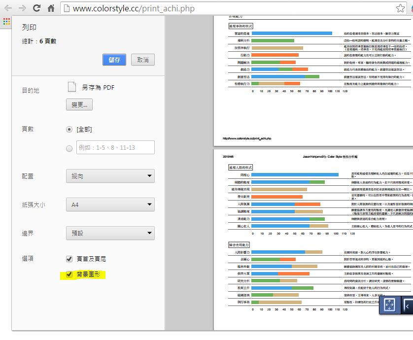 5.列印分析結果時,請勾選背景圖形,長條圖才會顯示出來。